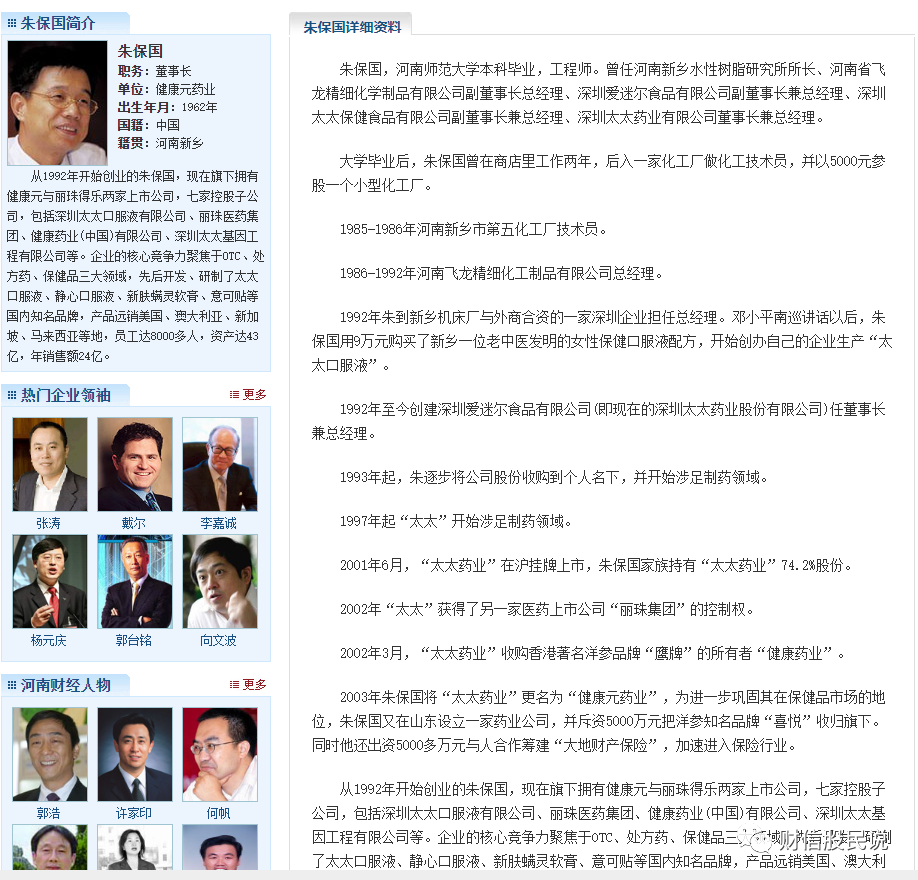 健康元朱保国医药强大的资本运作和人脉关系