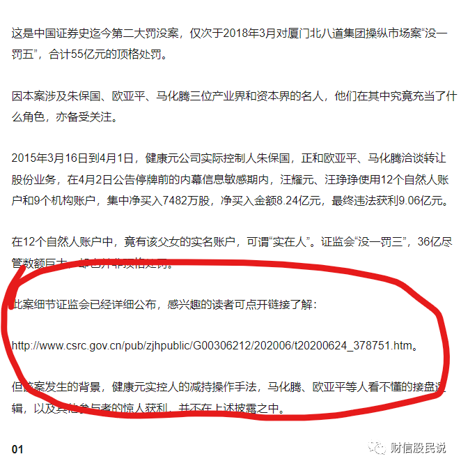证监会日前公布,依法对汪耀元、汪琤琤内幕交易“健康元”股票案作出行政处罚,罚没款合计36亿余元。